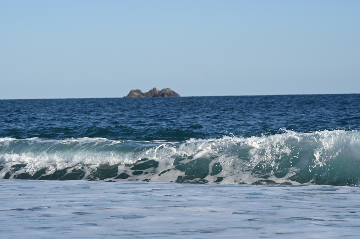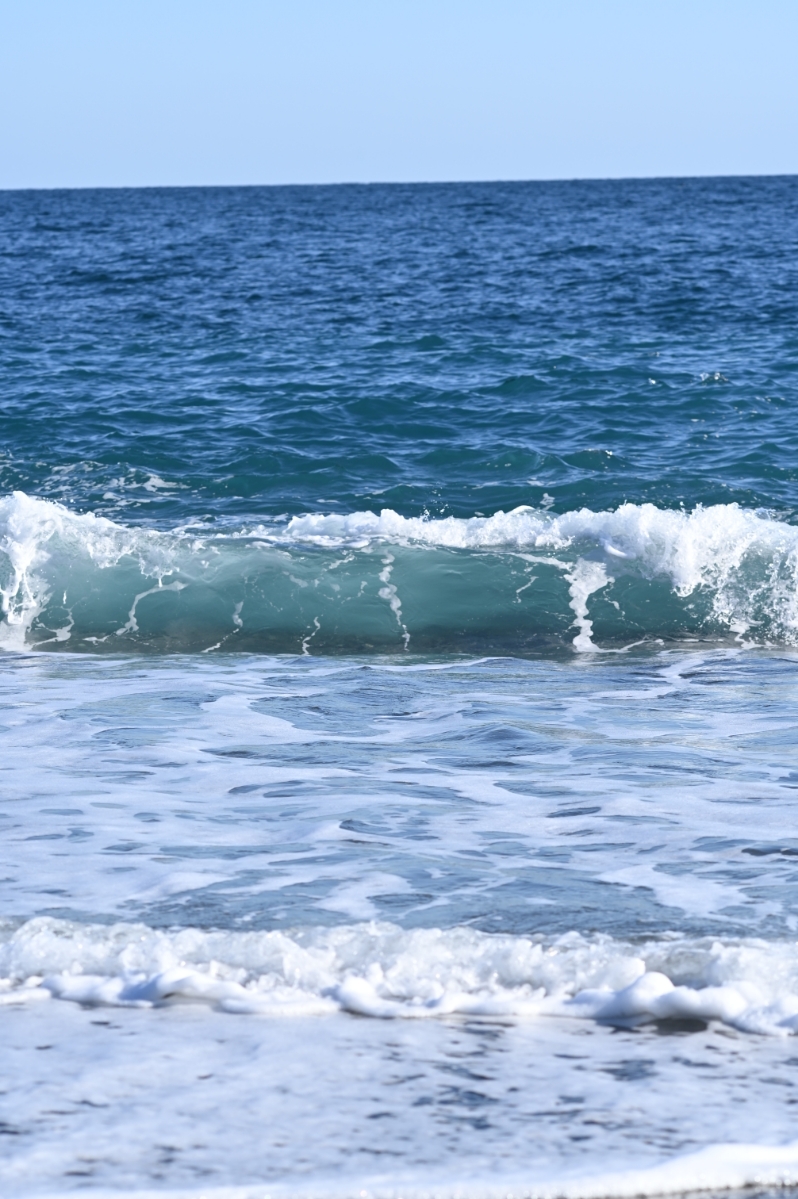 いつもの日本海は黄色い砂浜だが、ここは茶色い砂。砂の供給量も多いようで波が走る幅が広く、逃げごたえがある。チョッカイを出し過ぎてずぶ濡れにされた人を見たことがあるので今回はあまりイタズラしないでおく。