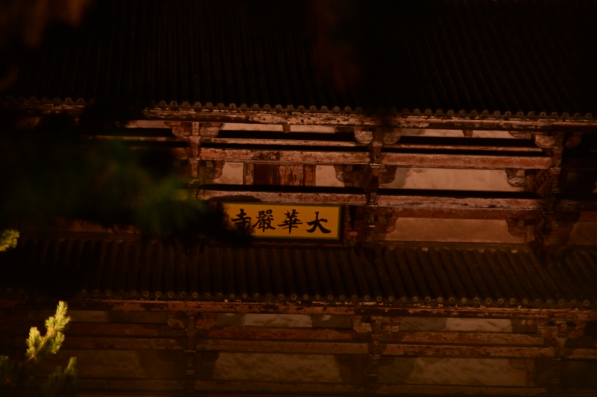 例によって大阪から深夜の阪奈道路を走って奈良へ向かう。駐車場に止めたら寄り道せずに大仏殿へ。いつも参道の夜店が並んでいるところは人が多いので山側へ迂回して南大門をくぐる。