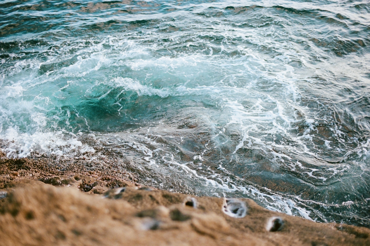 徐々に日も傾いてゆき、跳ねる飛沫にも横から夕日が当たる。波の頭がキラキラと輝く様子をPORTRAはしっかり写してくれた。そして海の中は澄んでいて空気と混ざって綺麗な水色である。